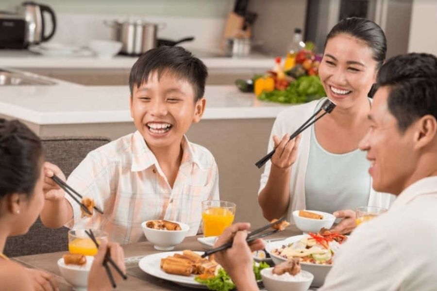 • Các thành viên cùng ăn và trò chuyện vui vẻ để tạo sinh khí tốt
